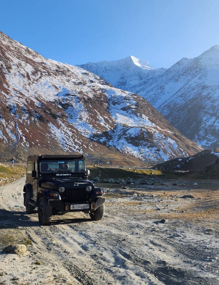 Driving an old 4×4 Mahindra Thar with a Hanuman gear added another layer of thrill to my adventure. The capability of the vehicle to navigate frozen streams and slippery terrain made me appreciate its ruggedness even more. At my hotel, I met several riders journeying from Leh to Kargil, exchanging stories of our travels.